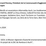 Jusqu’au 3 juin 2024, une procédure de participation par voie électronique est ouverte au sujet du projet de ZAC sur le site de Naréoux à Auch. C’est l’occasion de montrer à nos élu.es à quel point nous sommes nombreux.ses et déterminé.es à lutter contre ce projet écocide !Pour déposer votre avis c’est par ici : https://www.registre-dematerialise.fr/5304/Indiquez bien …